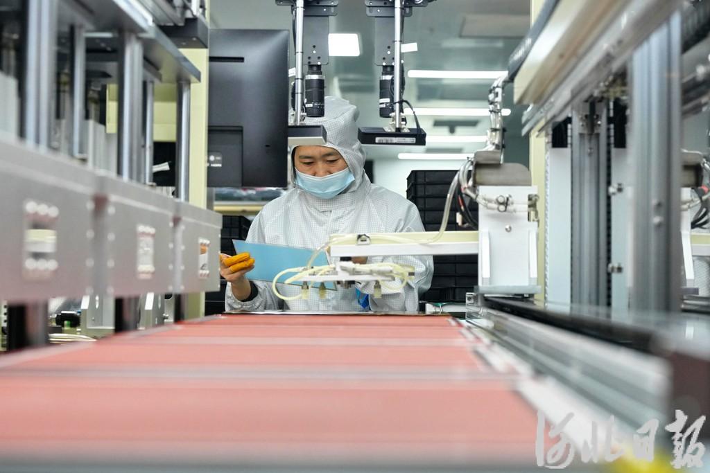 4月15日,位于京津冀智能网联新能源汽车科技生态港廊坊园区的华田信科(廊坊)电子科技有限公司,员工在生产线上忙碌。河北日报记者 王 伟摄